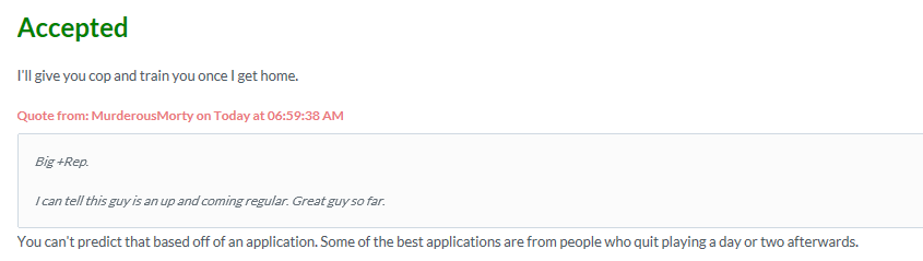 MurderousMorty thread was locked but Just to clarify, that was a prediction based on him farming in my base for like 3 days straight, not his application. [end thread] lol