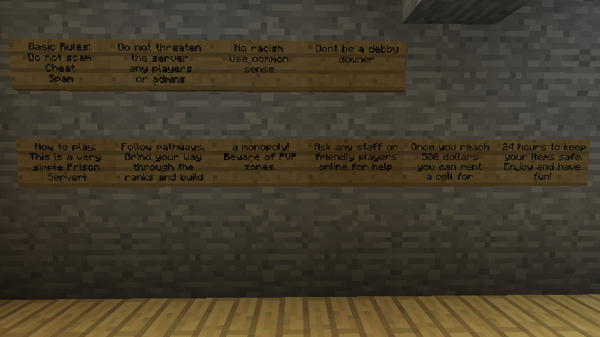 "We have six cell blocks at the moment: A, B, C, D, E, and G. Each block is slowly more difficult to get through but provides an interesting and fun experience grinding through the ranks to create a Gang, and monopoly over all goods going through the prison. You can have two cells at a time, similar to homes on our roleplay server. Nobody can open your cell doors or break blocks within your cell, it's protected. Other features include Parkour, fishing, and casinos!"