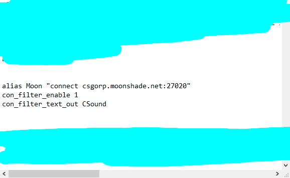and you can put other stuff in your autoexec too! as you can see i have a bind so that when i enter "moon" in the console, i connect to moonshade! you can also put some sm_commands in there too, like trail, hud color, ring color, etc